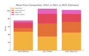 Excise duty (centre) ~₹9.48/लीटर (पेट्रोल)