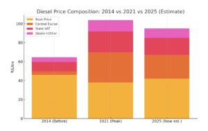 पेट्रोल-डीज़ल टैक्स तुलना: 2014 बनाम वर्तमान