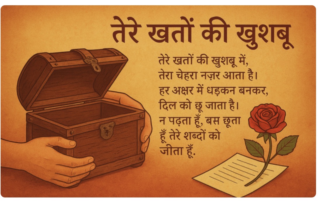 तेरे ख़तों की ख़ुशबू तेरे ख़तों की ख़ुशबू में, तेरा चेहरा नज़र आता है। हर अक्षर में धड़कन बनकर, …